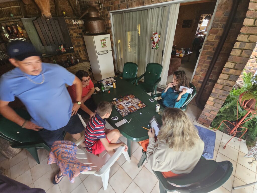 Ons vaar nou soos die gebruik is in die vorige aand se “leftovers” in en vat ‘n vroeë biertjie. Marsika het vir Craig ‘n Cluedo gekoop as geskenk en die oggend word verwyl met die speletjie. Dit vat my sommer baie jare terug. Ek onthou hoe ons as kinders saam my ma en pa in die 1970’s elke aand bord speletjies gespeel het in ons 13 voet Jurgens as ons op vakansie is. Nadat my pa gewen het het ons die tafel opgeslaan, pappa en mamma het hulle dubbel bed opgemaak en Hendrik en ek het op ons blou “stretchers” in die tent gaan slaap.