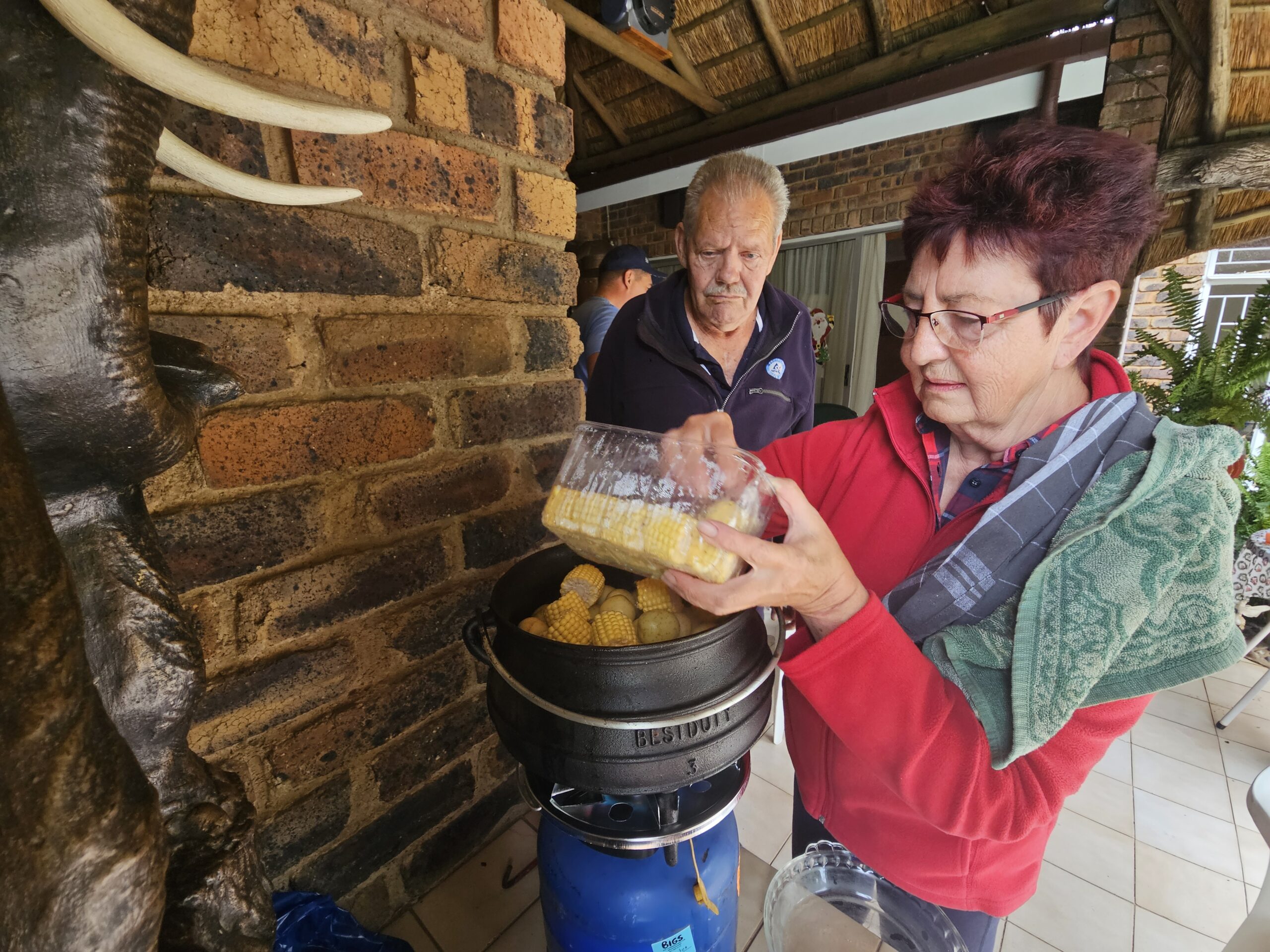 Bonnie het seker ook die 2019 potjies in gedagte want sy gee raad en kommentaar as sy voel dit kan van hulp wees. (Sy doen al die voorbereiding so sy kan seker iets te sê hê) Totdat Pa Piet droogweg opmerk terwyl hy aan sy pyp suig: “Craig, lig bietjie daar die deksel sodat jou skoonma daar ook kan kommentaar lewer.” Ek dog ek verstik aan my Windhoek Draft.