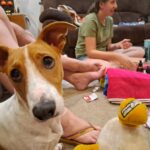 Faf en Lulu is ook saam. Faf was natuurlik buite homself. Hy is nou amper 7 maande oud en hier is BAIE mense wat BAIE aandag gee en stukkies wors en vleis onder die tafel aangee.